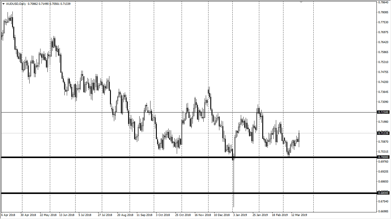 The Australian dollar initially fell during the trading session, but then turned around to show signs of life again after the Federal Reserve had its statement. That being the case, the market looks as if it is ready to continue to try to go higher, but we have a lot of resistance overhead as well. Because of this, I believe that the same situation is in effect, meaning that we are simply buying the dips for short-term trades as we go along. The 0.70 level underneath is massive support that extends down to the 0.68 level.