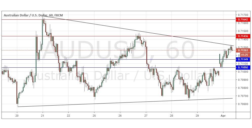 Go short following some bearish price action on the H1 time frame immediately upon the next touch of 0.7105 or 0.7115.