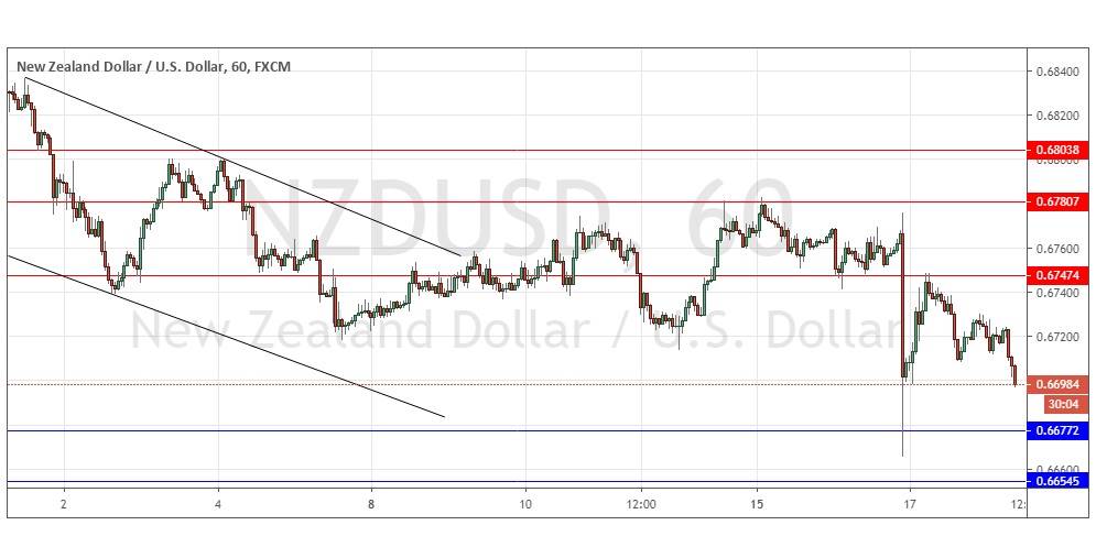This pair has become interesting, with the price spiking down yesterday to a new multi-month low not seen since January. The price recovered quickly, but has fallen again over recent hours, and appears to be selling off with healthy momentum. A close below 0.6680 at the end of today’s New York session would suggest that still lower prices will be reached over coming days, although this is complicated by the fact that we are about to begin a small holiday period which will see closed markets or extremely thin liquidity, as well as the two key support levels which are not far below 0.6680. I would take a bearish bias if the price trades below 0.6680 during the first half of the New York session later today.