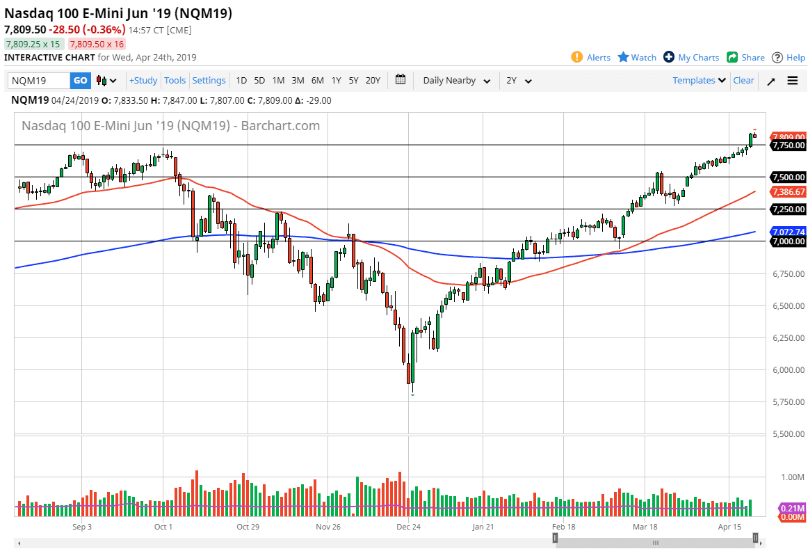 The S&P 500 pulled back a bit during the trading session on Wednesday, as we approached very high levels. At this point, the 2950 level above should be massive resistance, and I think at this point it’s very likely that a pullback will offer value. The 2900 level underneath is support, so it would make sense to find value hunters and longer-term traders looking for lower pricing. At this extreme overbought condition, we may need to consolidate a bit to build up the necessary momentum. The earnings season is in full bore, so that of course will continue to throw this market around. What is starting to change those the fact that the US dollar has strengthened quite drastically. If that keeps up, it may weigh upon stocks. Regardless though, I think that longer-term traders are trying to get to the 3000 handle.