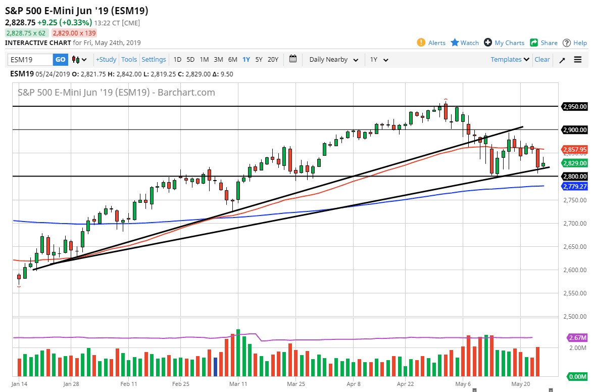 The S&P 500 rallied a bit during the trading session on Friday but gave back all of the gains. This is in a huge surprise though considering what we had seen on Thursday and the fact that the volume would have been a major issue going into the Memorial Day weekend. With that being the case, I would read too much into the Friday candlestick, except for the fact that people are not willing to hold on a lot of risk going into the weekend. We have three days of potential headlines that could cause issues in this marketplace, so it makes sense to stay away. Beyond that, the stock market will be closed on Monday. However, there will be futures markets trading occasionally on the Globex, so it’s possible that you can play the market if you choose to, and at this point I suspect it’s probably selling the rallies that will be the most beneficial trade.