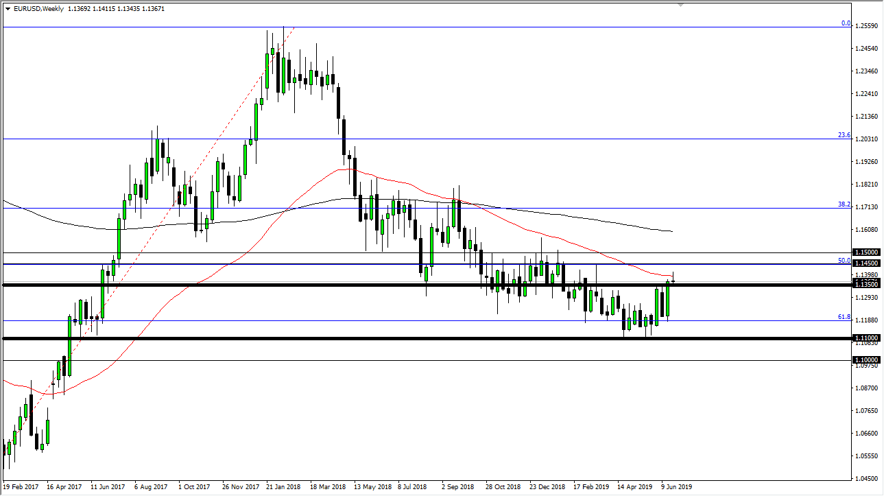 Looking at this chart, if we can break above the shooting star, that should send this market much higher, perhaps reaching towards the 1.15 level where I expect see a lot of resistance. However, I think we are much more likely to see a short-term pullback, only to find buyers underneath. If we were to break above the 1.15 handle, the market then breaks out to the upside and goes looking towards 1.18 level. I do not expect that during the month of July, but I do expect that later this year.