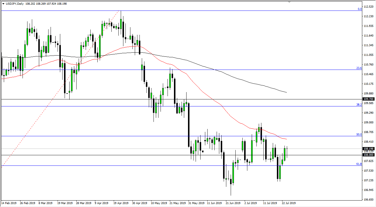The US dollar initially fell against the Japanese yen during the trading session on Wednesday but found plenty of buyers near the ¥108 level. By doing so we ended up bouncing to form a hammer and that of course is a bullish sign. I think given enough time we will continue to find the markets trying to drive to the upside, perhaps right along with risk appetite as the S&P 500 did fairly well during the day. Because of this, I think it’s probably only a matter time before this pair tries to reach towards the 50 day EMA just above, and it does look like we just formed a bit of a fractal on the daily chart as well.