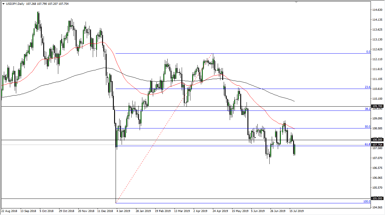 The US dollar bounced a bit during the trading session on Friday to recover against the Japanese yen, showing signs of life again. We had sold off rather drastically during the trading session on Thursday, reaching down towards the ¥107 level before bouncing again. That being the case, it makes sense that the buyers will continue to jump into this area. Overall, this is a market that I think continues to consolidate, based upon the recovery of this market.
