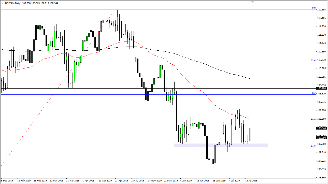 Looking at this pair, I also see the ¥107.50 level as massive support. It not only features a couple of hammers, but the 61.8% Fibonacci retracement level also is in the same area, so I think that it’s only a matter of time before buyers would come in if we went back down to that level.