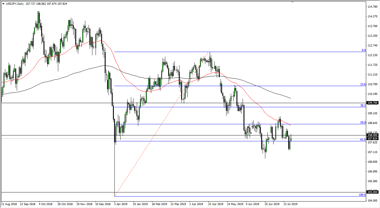 The USD/JPY pair is very likely to react towards the risk appetite of traders around the world as the Japanese yen is without a doubt one of the most important safety currencies out there that we can be involved in. The US dollar is also a safety currency, but it is not as much of a safety currency as the Yen is. That being the case, the market is probably going to see a lot of selling pressure again as we approached the ¥108 level, and I also see a couple of other areas above that could cause a bit of trouble.