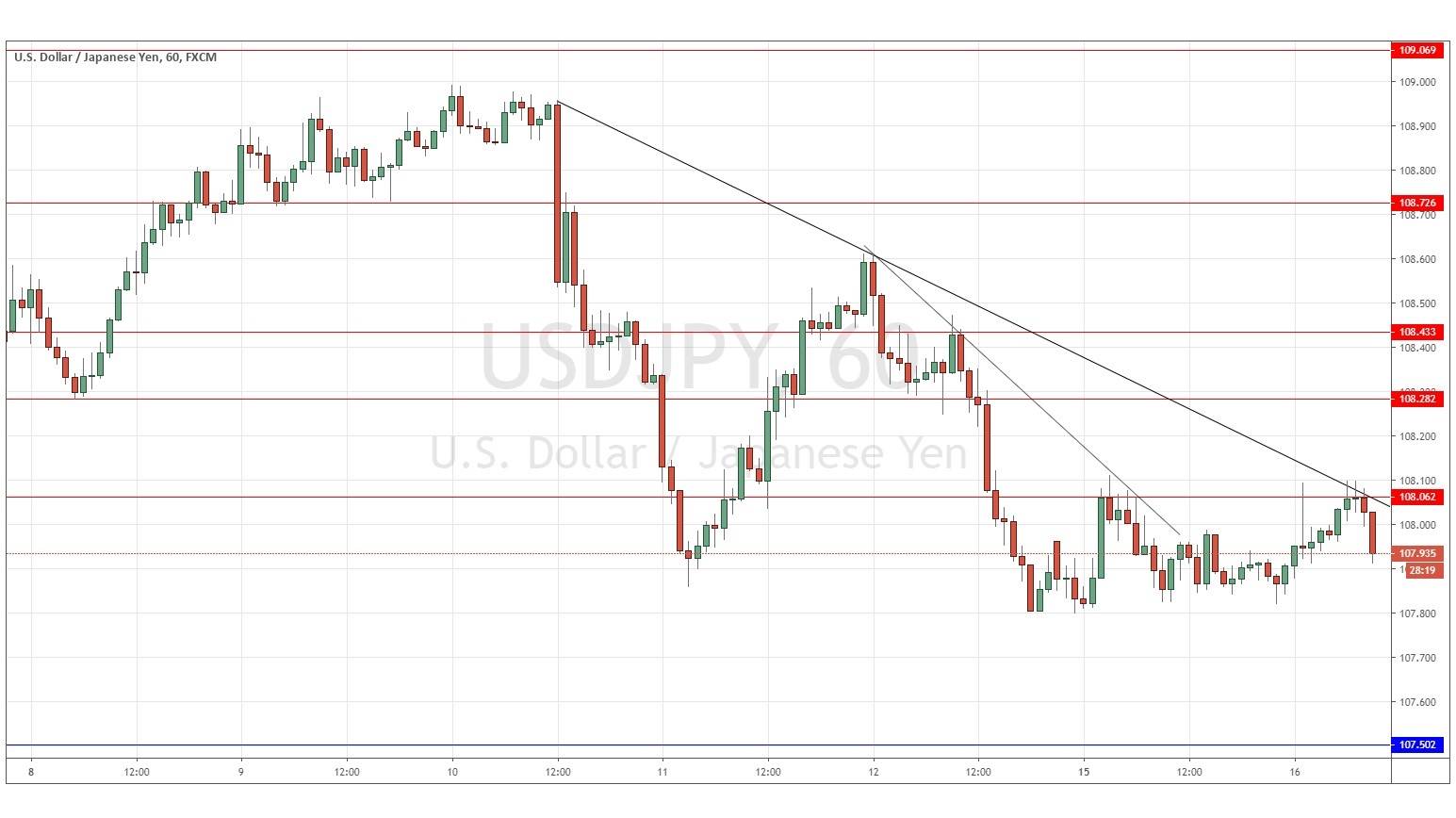 I wrote yesterday that I saw the best opportunity for the day as likely to be a short trade down to 107.50 after the price either broke below 107.70 with strong momentum, or after a failure to rise above 108.06 following a retracement – I would take a bearish bias in these cases.