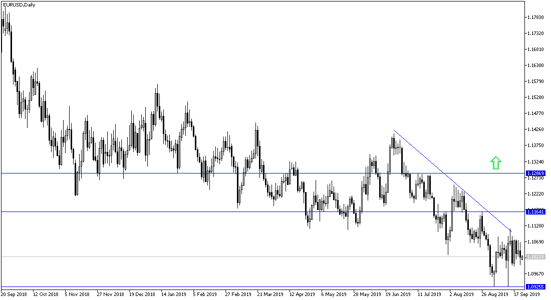 At the beginning of a new week, the EUR / USD is attempting to maintain a stable move above the 1.1000 psychological level to avoid further downside pressure. Today, the focus will be on the release of purchasing managers' indexes for the manufacturing and services sectors, which are important for the Eurozone economies. Germany leads the region's economy. It was adversely affected by the global trade war. This prompted the European Central Bank to pass a stimulus package for the region's economy, including lowering interest rates to negative levels and returning to bond purchases program again.