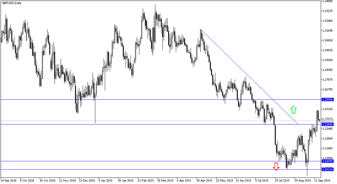 Despite the resumption of the British-EU dialogue sessions on determining the Brexit path, the GBP/USD has stopped the correction which pushed it towards the 1.2505 resistance level, its highest level in seven weeks, and failed to penetrate it in the last two trading sessions, which was normal. That pushed the pair back to 1.2407 support at the time of writing. British Prime Minister Johnson and the president of the European Commission (EC) have agreed to intensify dialogue and negotiation sessions on a daily basis to reach an agreement to avoid a no-deal Brexit on Oct 31st. Johnson has suspended the work of the parliament not to hinder his goal of getting out of the bloc on schedule and in anyway, today, there is an important court ruling that would determine the legality of his action. The cancellation of the measure means renewed political conflict between the new British government and the opposition after heated sessions before the suspension of parliament, which ended with an agreement that Britain would not leave the union without an agreement either on Oct. 31 or on a delayed date. Early elections will not be held at Johnson's will.
