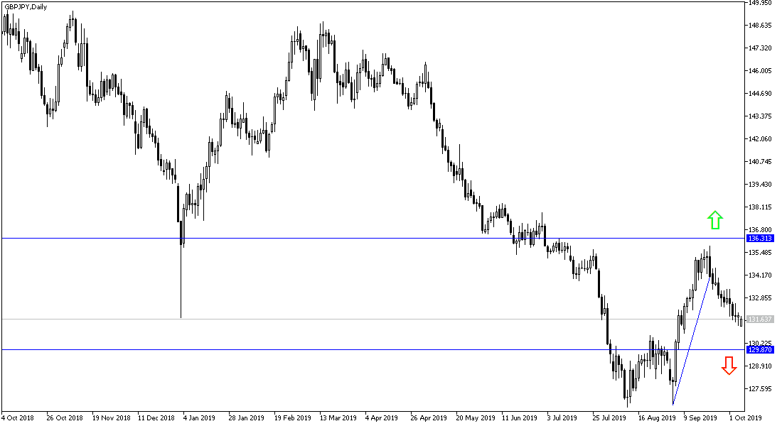 According to the technical analysis of the pair: On the daily chart, the general trend of GBP/JPY is still bearish and a test of the 130.00 psychological support will consolidate the strength of this trend, and then warn to test stronger support levels, especially if there is a negative development for the future of Brexit. On the upside, there will be no strong chance of an upward correction without the pair settling above 133.60 resistance. Otherwise, the bears will remain in full control of the pair's direction.