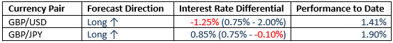 For the month of October, we forecasted that the best trades would be long GBP/USD and long GBP/JPY. The performances to date are as follows: