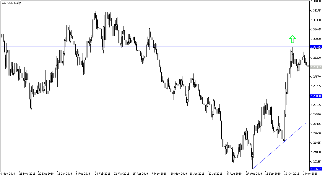 All traders' focus today will be on the Bank of England's announcement of its monetary policy, especially after the recent and rapid developments of the Brexit process, which ended in early elections on December 12 to end the political stalemate that plagued the country after Boris Johnson failed to pass the latest Brexit agreement with the European Union through the Commons’ Council. Ahead of the bank's decision, the GBP/USD pair moved in a corrective performance down to the 1.2837 support at the time of writing, with the US dollar gaining amid optimism that a comprehensive agreement could be signed between the world's two largest economies later this month. This will be positive for the US economy and for the dollar.