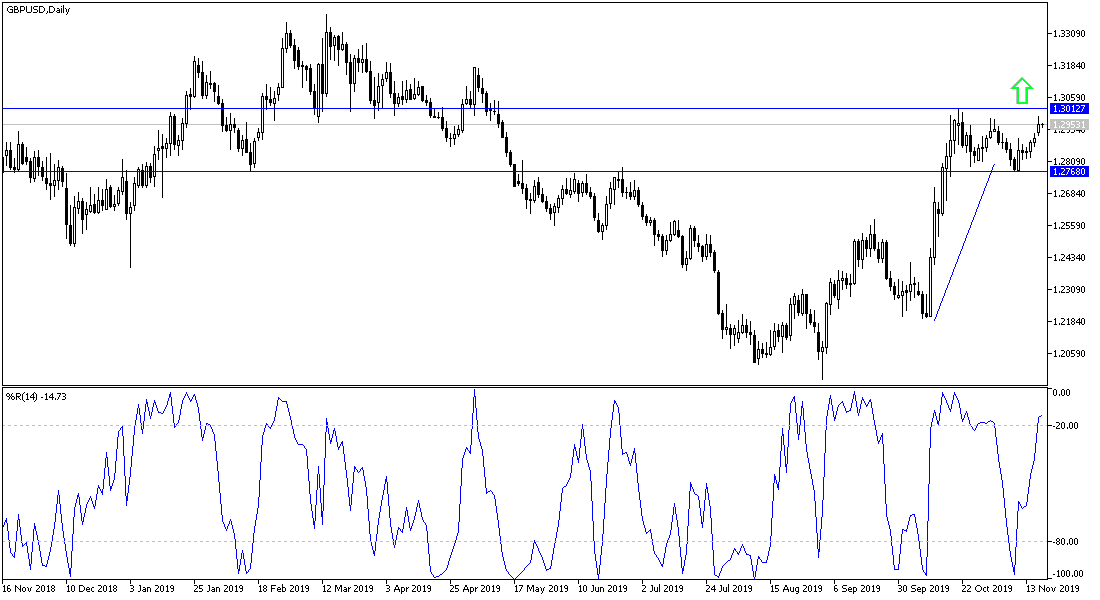British political parties are stepping up their campaigns to attract the largest number of supporters to win the country's early elections on Dec. 12, which will determine the fate of Brexit. Opinion polls still favor the Conservative Party led by Prime Minister Boris Johnson. In case the conservatives win the election, it might be easier for him to pass the Brexit deal he signed with the bloc last month. This optimism still supports further gains for the GBP/USD which reached the 1.2985 resistance, and closer to the 1.3000 psychological resistance, which increases the bullish momentum as shown on the daily chart below.