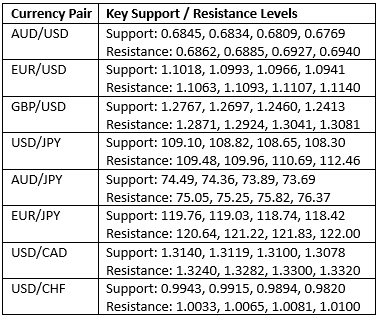 We teach that trades should be entered and exited at or very close to key support and resistance levels. There are certain key support and resistance levels that should be watched on the more popular currency pairs this week, which might result in either reversals or breakouts: