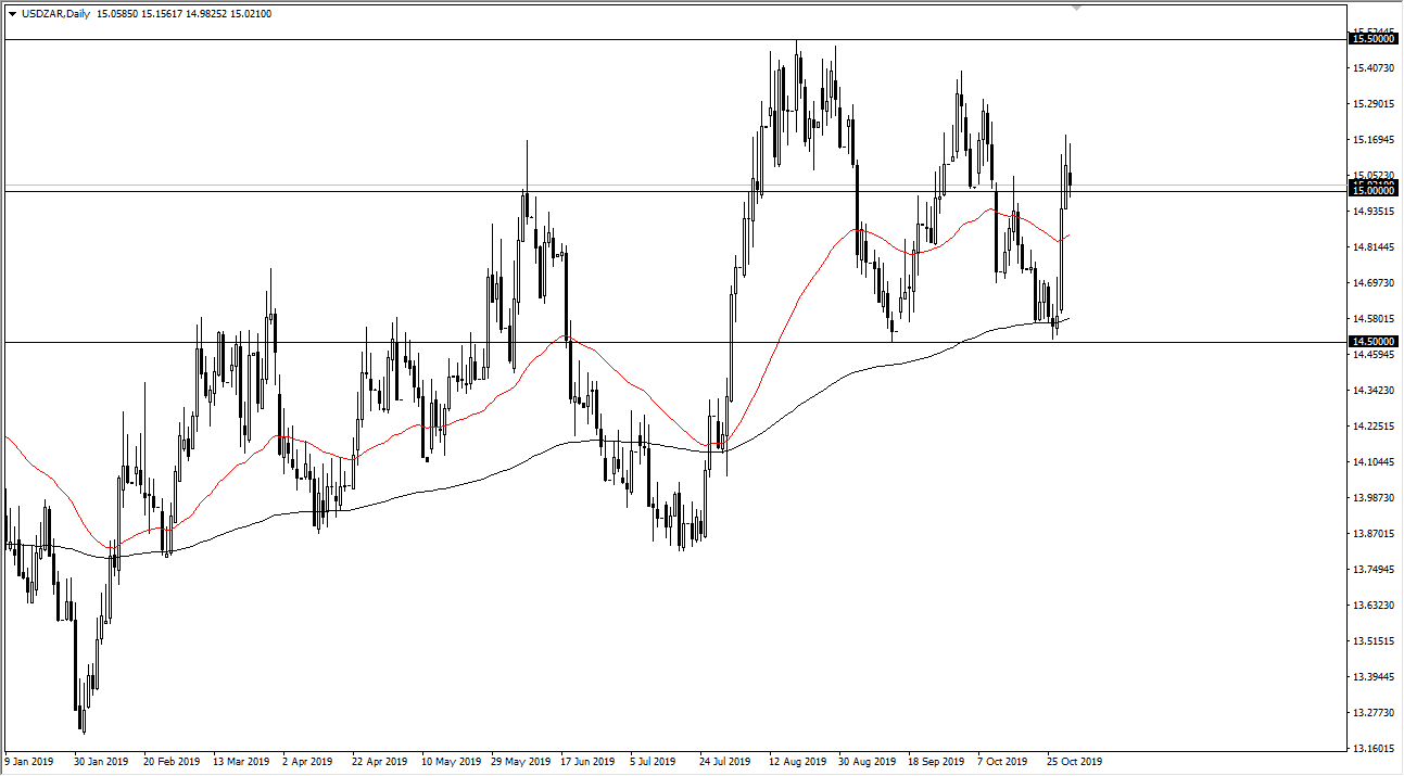 Looking at the most recent highs, they are lower than the previous one, so it does suggest that perhaps things are starting to turn around in this pair. That being said, the 15.50 Rand level above is massive resistance, and it should continue to be important as the where we go next. If we were to somehow reach above that level it would kick off an entire new leg higher. That being said, this is a great pair to watch as far as risk on or risk off attitude is concerned. Recently, we have had the Federal Reserve cut interest rates and suggest that they were going to be on the sidelines, and although that’s not easy and monetary policy it shows that they are at least willing to put things on pause and kind of sit on the sidelines to digest the economic conditions. That will have a major influence on the US dollar and should have quite a bit here as well as this pair won’t be as liquid as some of the major markets. It looks as if a move below the 15 Rand level will probably open up the possibility of a move down to the 14.60 Rand level, possibly 14.50 ran.
