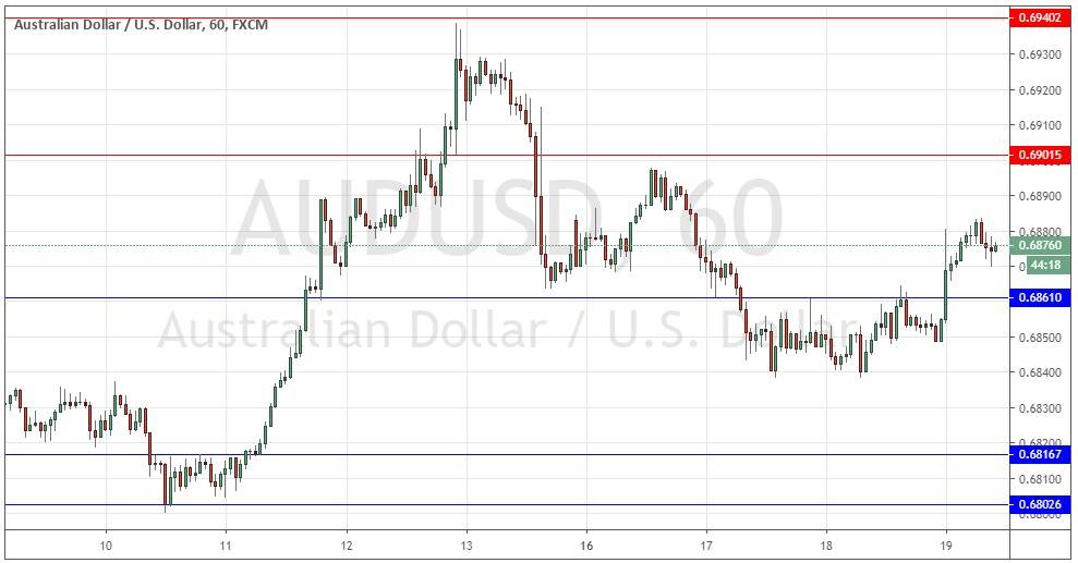 I was roughly right but the gamble on 0.6861 holding as resistance did not pay off. The price has gotten established above it and this level is now probably going to act as support. At the same time, there is new resistance confluent with the round number at 0.6900.