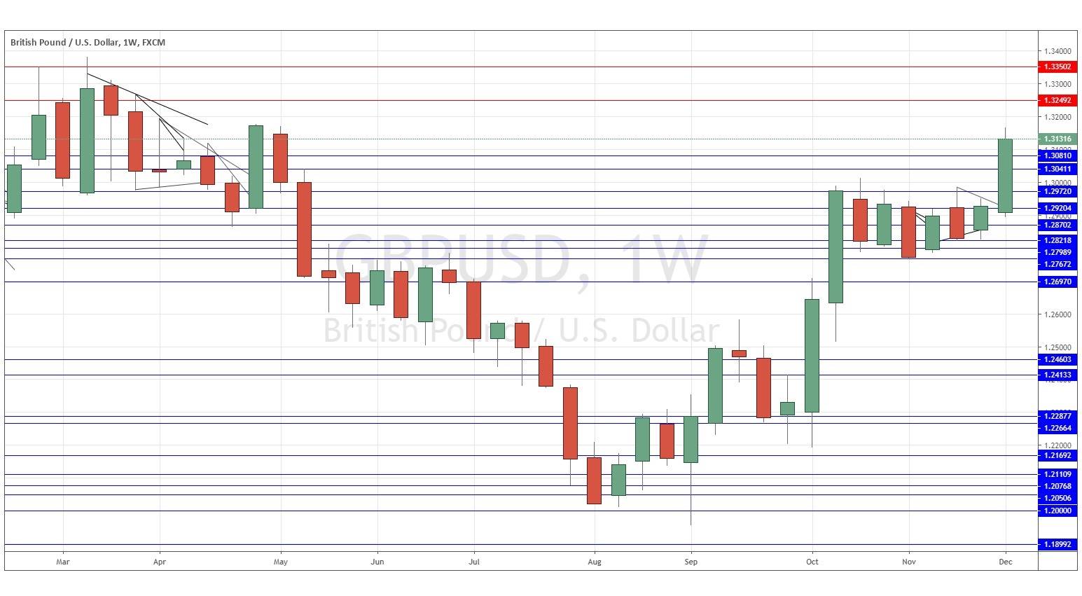 There are a few long-term trends in the Forex market, notably bullish trends in the GBP/USD and NZD/USD currency pairs, and a bearish trend in the EUR/GBP currency cross. I am wary of trading EUR/GBP short and prefer to trade GBP/USD long. The long-term bullish breakout made by the GBP/USD last week is driven by the fact that opinion polls are showing a strong government victory should happen in next Thursday’s election, which would resolve the Brexit impasse.