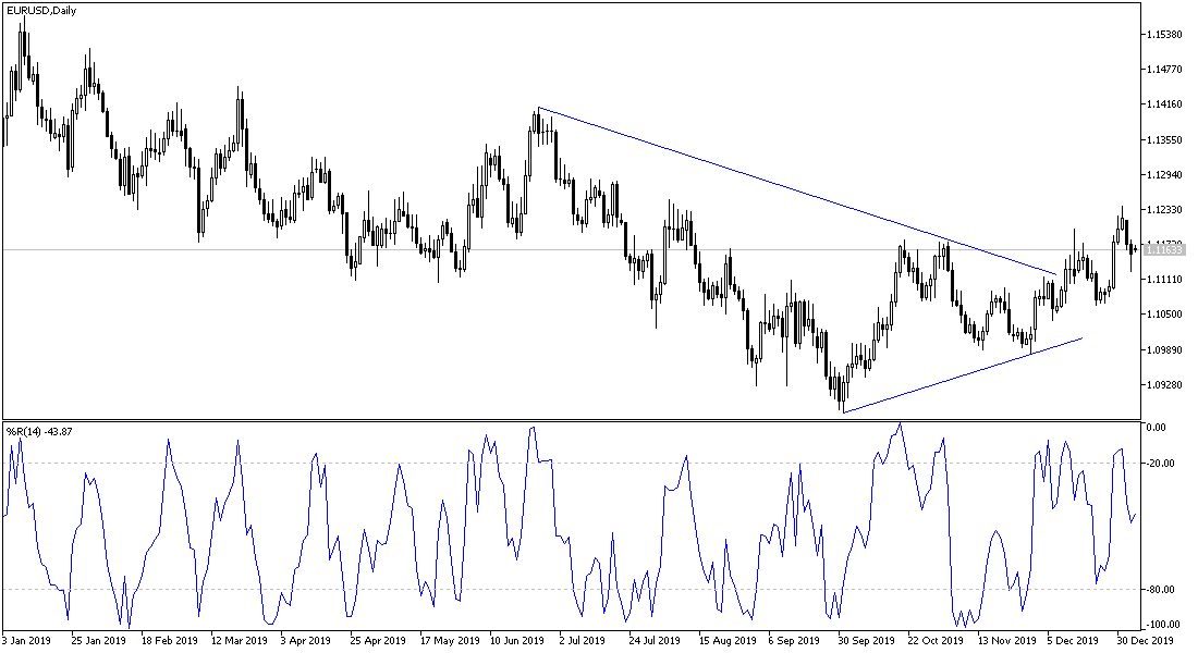The EUR/USD price did not enjoy its recent gains, which reached the 1.1240 resistance, the highest level in nearly five months, before falling back to the 1.1125 level during the last Friday session. What supported the return of the gains of the US dollar is a return to it as a safe haven by investors, due to renewed tensions between the United States and Iran, which will dominate the currency market this week as well.