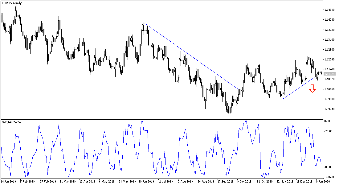 The crucial day for financial markets is the date for signing the initial trade agreement between the United States of America and China. A state of anticipation and cautious waiting takes over the performance until the details of that deal are announced and the future of the coming stages to end the tariff war between the two largest economies in the world, which contributed to slowing global economic growth, which very close to stagnation if this conflict continues. This optimism helped the EUR/USD pair to correct upward towards the 1.1146 level, but the rebound was not strong, as the single European currency is still facing pressure from the weak economic performance of the Euroarea. The pair did not benefit much from the disappointing results of the US jobs numbers by the end of 2019, nor the announcement of weak US inflation levels.