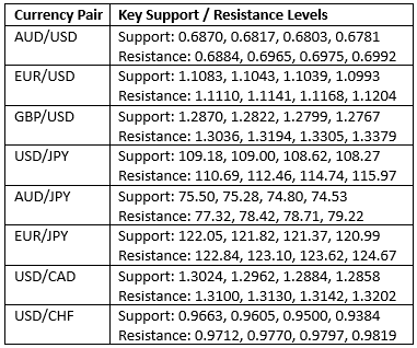 Key Support/Resistance Levels for Popular Pairs