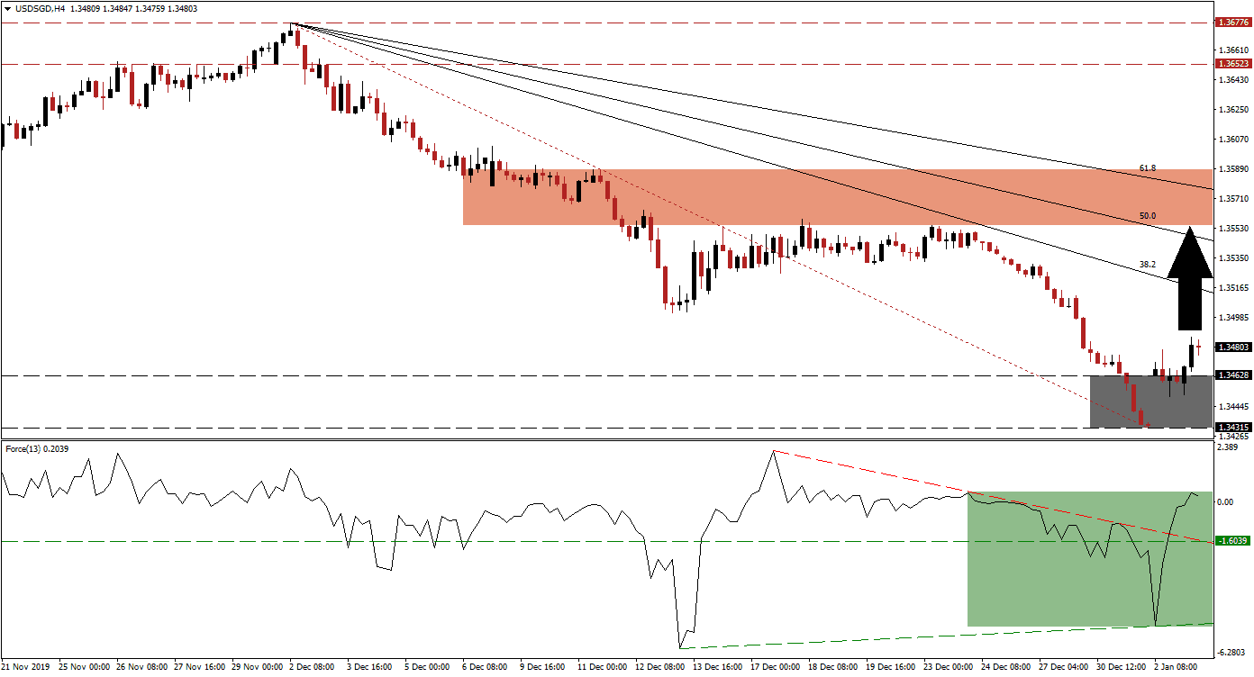 Since December 2019, the US Dollar has been under increasing selling pressure. President Trump has argued for a weaker currency, and economic data was bearish enough to warrant portfolio adjustments. The strong advance in the US currency showed early signs of collapsing after the US Federal Reserve was forced to inject capital into the repo market in September. Given the strong sell-off, a minor reversal was expected. The start of 2020 saw a price gap to the upside in the USD/SGD, taking it to the top range of its support zone. Reports of the killing of a top Iranian general by a US airstrike in Iraq allowed this currency pair to push higher.