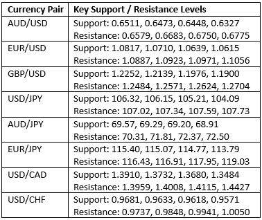 Key Support/Resistance Levels for Popular Pairs