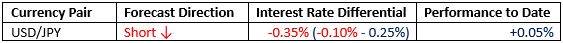 For the month of May, we forecast that the best trade would be short USD/JPY. The performance so far is shown in the table below:
