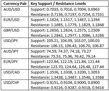 We teach that trades should be entered and exited at or very close to key support and resistance levels. There are certain key support and resistance levels that can be watched on the more popular currency pairs this week.