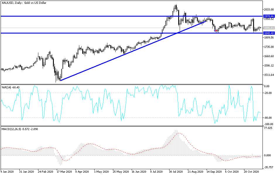For a short time, gold prices tested the psychological resistance at $1900 at the beginning of this week's trading, before it quickly fell to the support at $1865 an ounce again. This was immediately after the announcement of an effective coronavirus vaccine from the American company Moderna. The declared success rate is the highest among the those recorded by other vaccines that the world awaits. Gold has returned amid fresh buying to stabilize around $1895 an ounce at the time of writing.