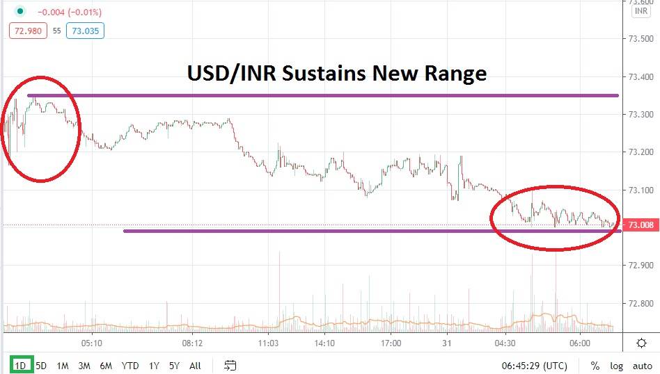 The USD/INR has seen downward momentum remain tantalizingly strong the past few trading days. Resistance levels have incrementally lowered, and although light holiday volume shadows Forex, the direction of the USD/INR is showing an ability to sustain its trend. The Indian rupee, as of this writing, is trading near the key psychological mark of 73.000 and speculators should monitor the value of the USD/INR closely.