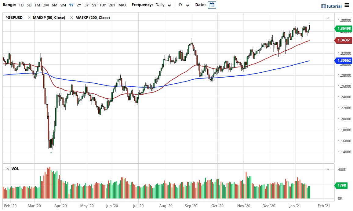 The British pound initially tried to rally during the trading session on Wednesday but gave up gains above the 1.37 level as it continues to be massive resistance. There is a significant amount of previous resistance at roughly 1.3750, so it does make sense that the British pound is struggling to bit here. That being said, I do think that the British pound may have gotten a bit ahead of itself and therefore I think a correction is looking more and more likely.