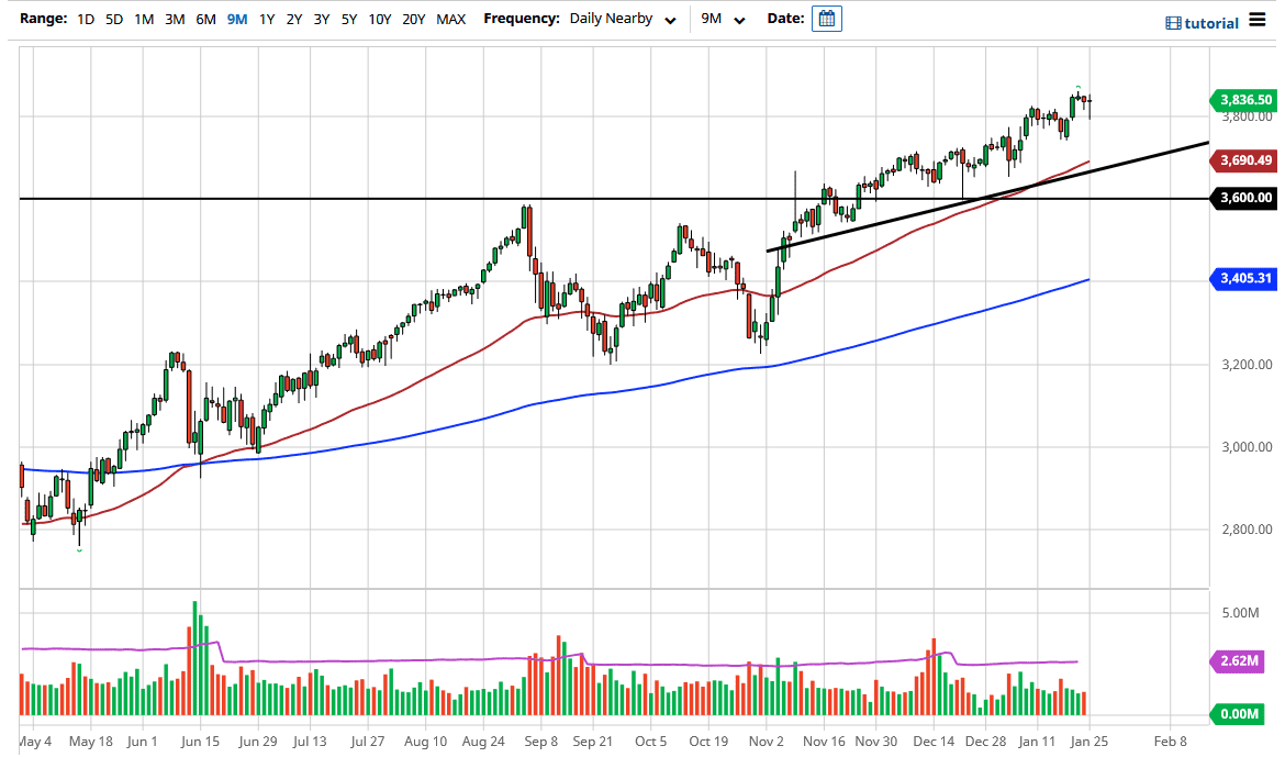 I believe that the 4000 level is likely due to the fact that it is a large, round, psychologically significant figure, which tends to be very magnetic for price. Beyond that, it would be an area that will have a certain amount of profit-taking involved in it as well. The market has been one that has been very steady, but we are starting to accelerate to the upside just a bit, and that suggests that we are ready to continue to go higher in general.