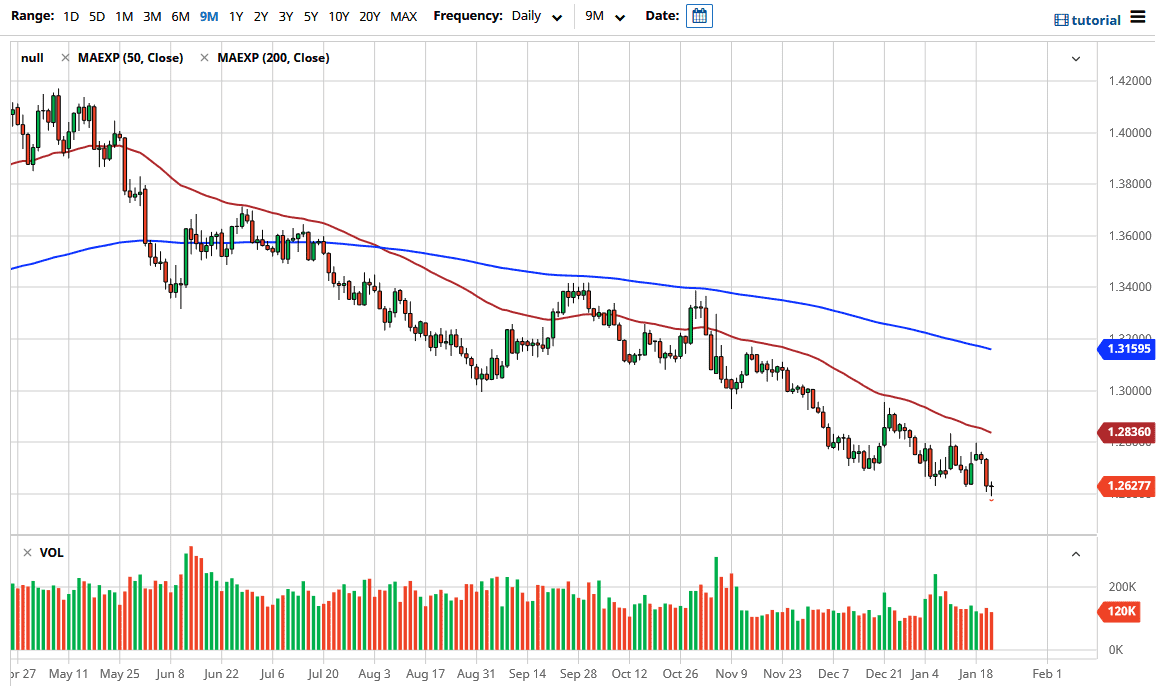 The 50 day EMA above is hovering just above the 1.28 handle, so that could be an area where we would see a certain amount of selling, just as the 1.30 level would be interesting as well. A bounce towards that area will probably be met with significant resistance unless of course the stimulus package completely comes on Don and does not look likely to happen. That is almost impossible to imagine because Wall Street has trained politicians in the United States to offer more stimulus every time there is a tantrum, and I can guarantee you that if stimulus is taken off of the table there will be a massive tantrum. So that being said the trade still favors the downside but perhaps not in the short term. If we do break down below the 1.26 level, then it is likely that we go looking towards 1.25 handle underneath which of course is a large, round, psychologically significant figure. Pay attention to crude oil, that obviously will have its effect on this market as well, as the Canadian dollar is so highly levered to that market.