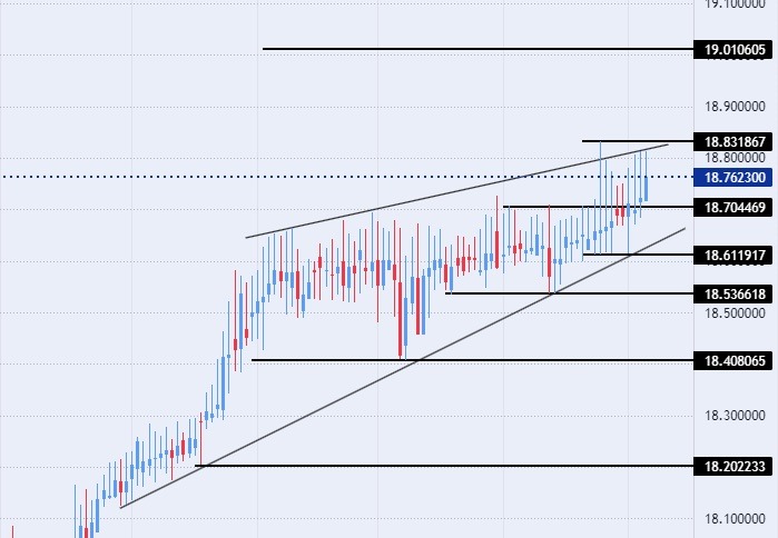Currently, the dollar against the pound is trading above the support levels of 18.70 and 18.60, respectively. On the other hand, the pair is trading below the resistance level at 18.83, which represents the highest price for the pair recorded in 2022. The pair is also trading below the psychological resistance levels at the integer number 19.00.