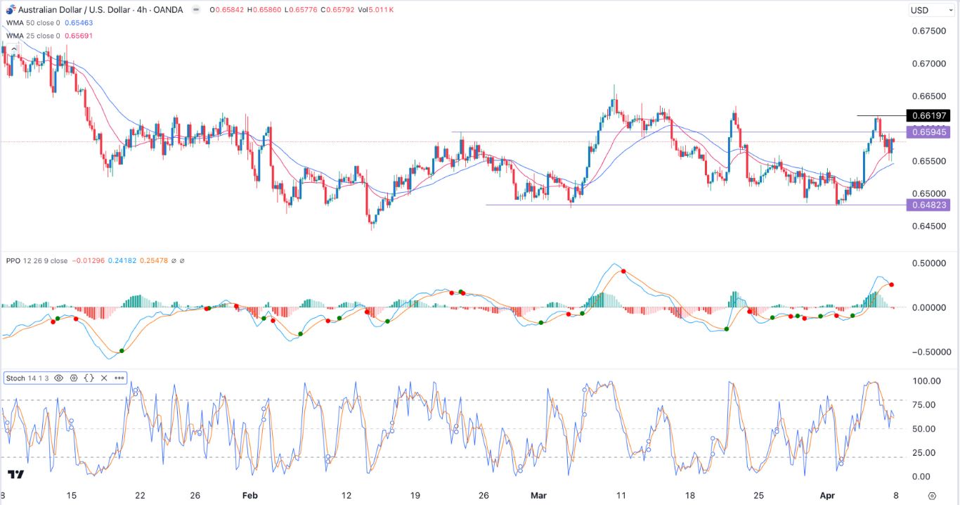 The AUD/USD pair bottomed at 0.6482 last Monday and then bounced back to a high of 0.6620 on Thursday. It has pulled back below the crucial support at 0.6595, its highest swing on February 22nd this year.