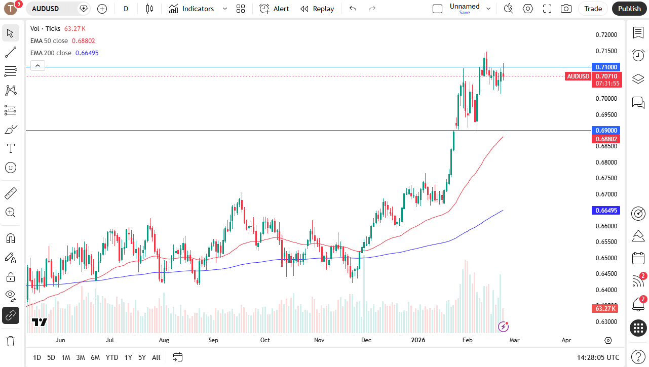 With all of that I think there's plenty of support all the way down to the 0.69 level so as long as we can stay above there where the 50-day EMA is currently racing towards I think you've got a situation where you continue to buy dips and take advantage of value but be cognizant that this is also an indicator not just a currency pair as a US dollar strengthening here would probably have knock-on effects in multiple other currencies.