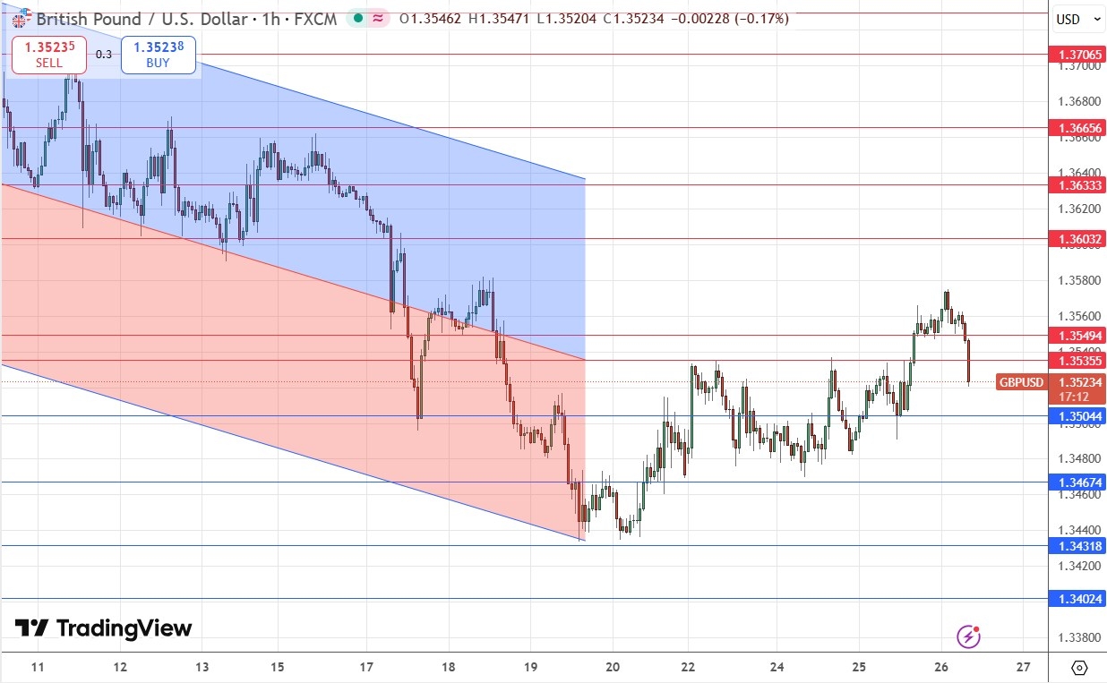 I was more or less correct about that, but there was no trade entry setup, and as the London session came to an end the price broke above $1.3550, briefly used that level as support, but then fell back and has since broken down through two former support levels.
