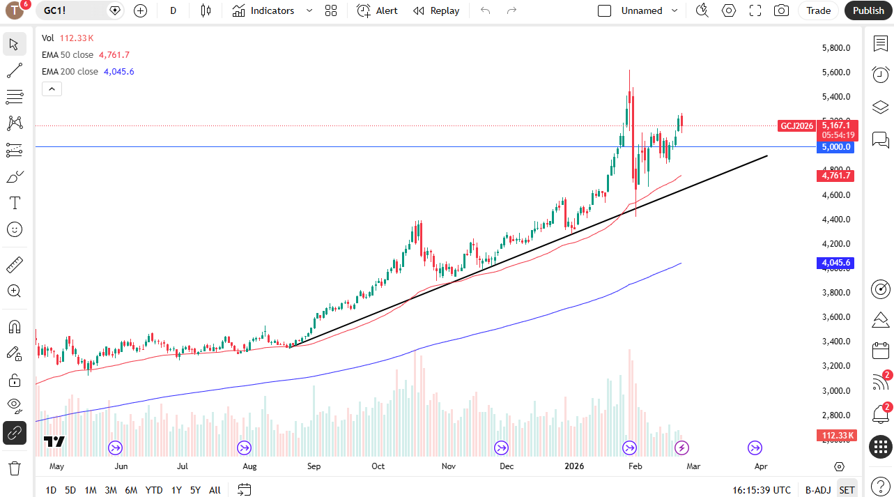 With all of this being said, I do think you are trying to find cheap gold along the way with $5,000 perhaps offering a bit of a magnet price, maybe even a bit of a floor. We will just have to wait to see. Even if we broke down below there though, I think it is really not until we drop below $4,600 that you have to be concerned about the overall trend.