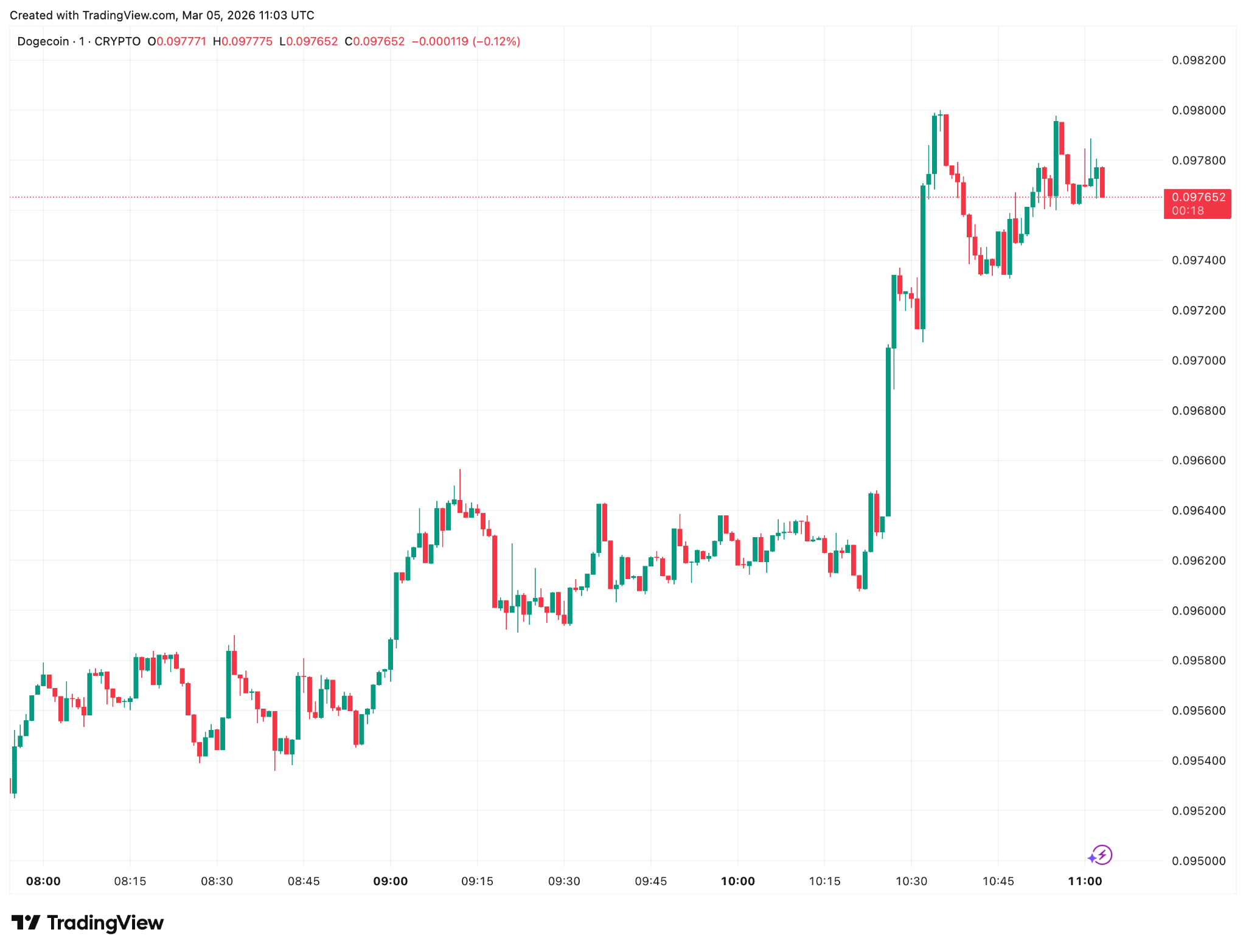 After several weeks of sideways movement between $0.087 and $0.095, Dogecoin has started to press higher, approaching the $0.10 level that has repeatedly acted as resistance over the past few months.