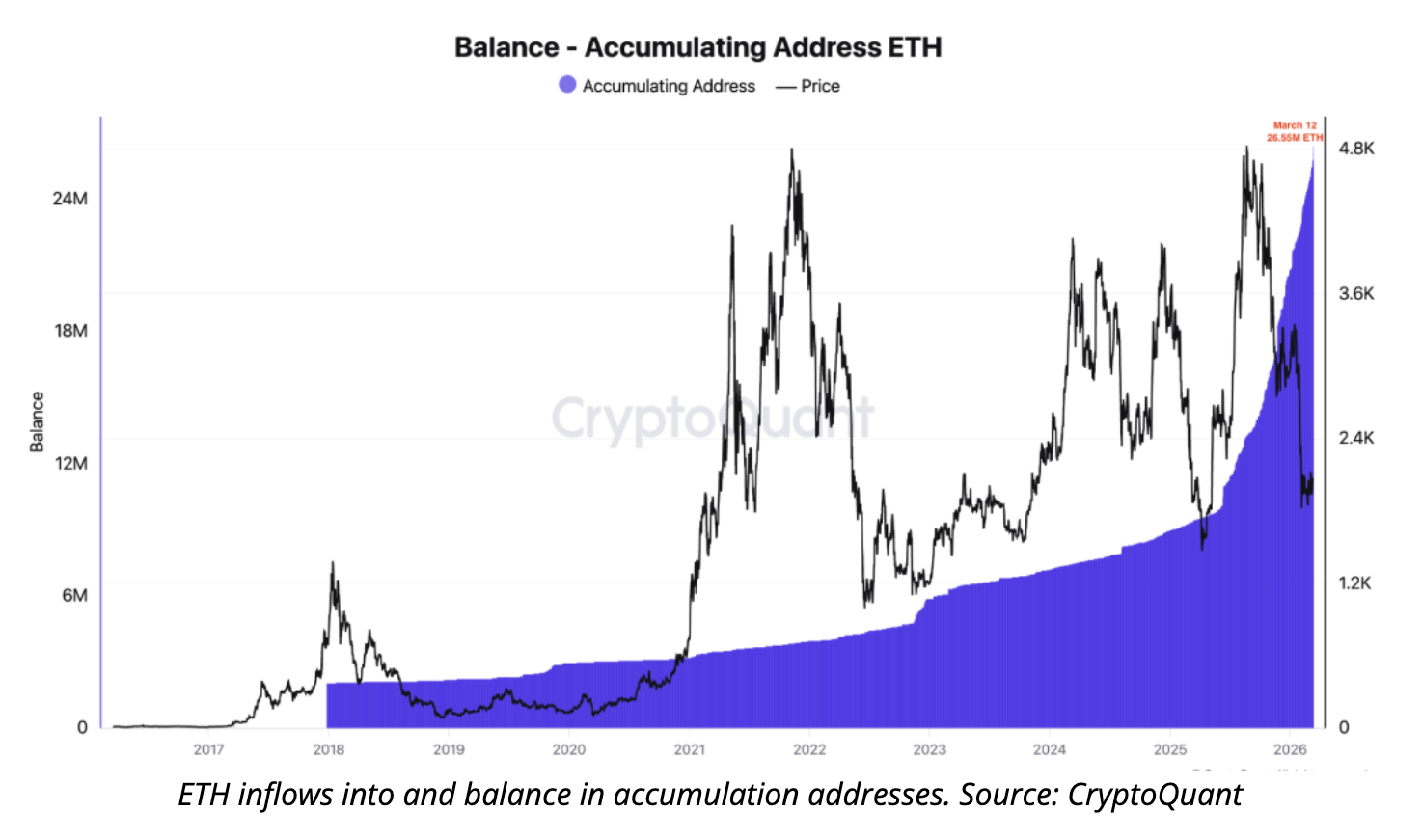 Ethereum’s high network activity backs Ether’s upside even as the price has declined by 30% year-to-date in 2026. According to CryptoQuant data highlighted by analyst CW8900, on-chain transaction volume and active address counts have risen steadily while spot prices retreated. This classic divergence — falling price alongside rising usage — is widely interpreted as strong accumulation activity by long-term holders who view the dip as a buying opportunity rather than a fundamental flaw.