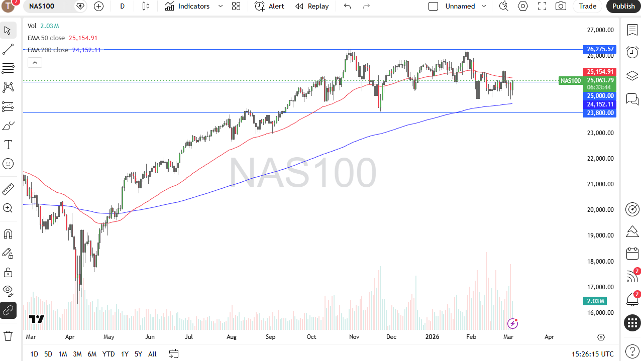 The Nasdaq 100 initially fell on Wednesday as we continued to see a lot of nerves out there when it came to the war in the Middle East. That being said, we have turned around to show signs of strength and have broken above the 25,000 level again.