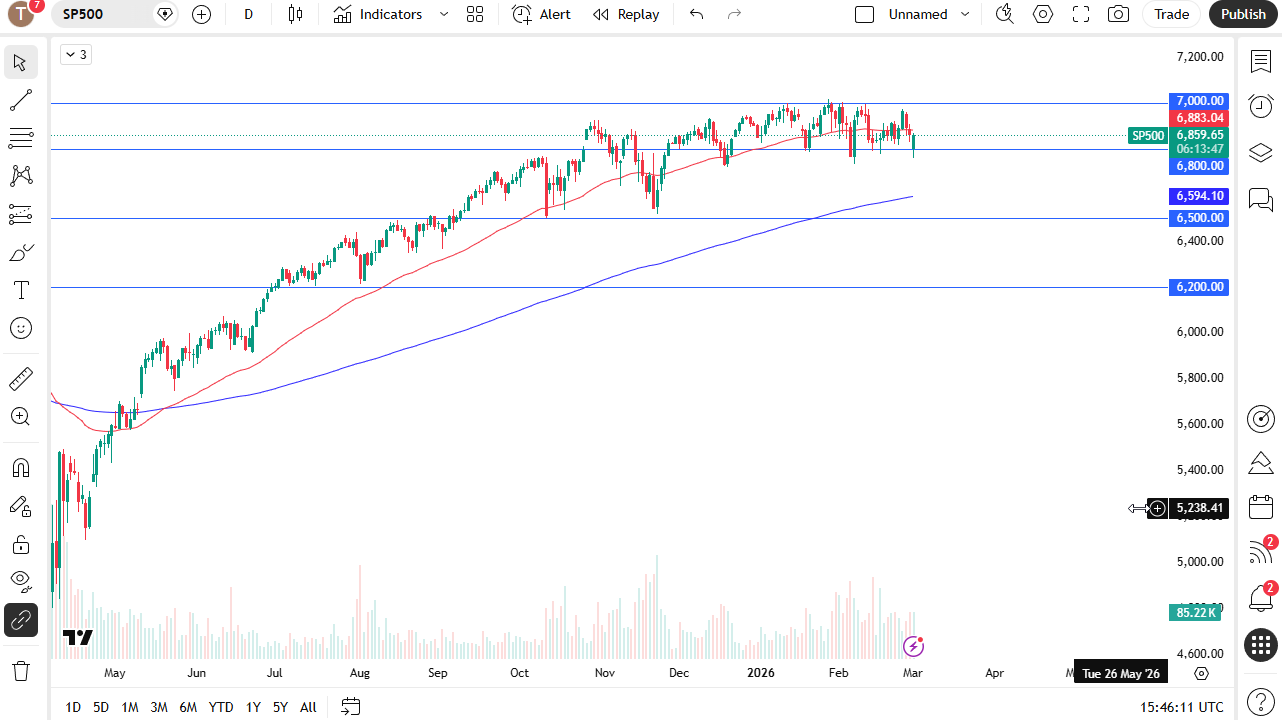 I don't have any interest whatsoever in shorting this market, especially after we've seen this reaction. Ultimately, I do think that the S&P 500 is going to do everything it can to break out against the resistance at the 7000 level.