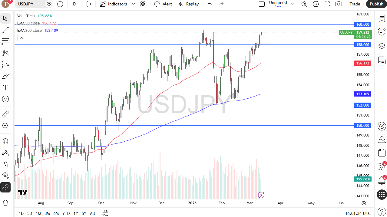 Now, unfortunately, a lot of retail traders will look at that and say well that's ridiculous, but the reality is sooner or later we have to come to a resolution. Ultimately, I do think we resolve to the upside, but there may be a significant drop here. If there is, I am more than willing to buy it. We just saw one all the way down to the 152-yen level. The Bank of Japan has a major issue with its debt, it cannot tighten rates much, and of course the Federal Reserve may have to deal with all kinds of inflationary shocks as war rages around the world. If this thing breaks 160 yen, we’re going to start to really test the strength and the possibility of a significant break in the forex markets that a lot of people quite frankly aren’t paying attention to. Short-term dips, I’m a buyer. You get paid to hold this trade, never forget that either.