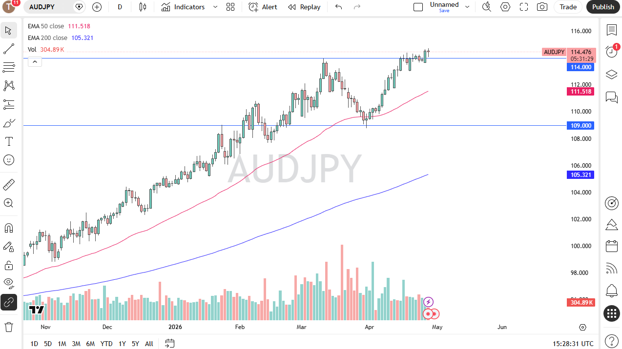 If we do break down below the 113 yen level, then the trade's dead and I think you're probably looking for support near the 50-day EMA. All things being equal, the one thing that you don't see me doing is shorting this pair or buying the Japanese yen.