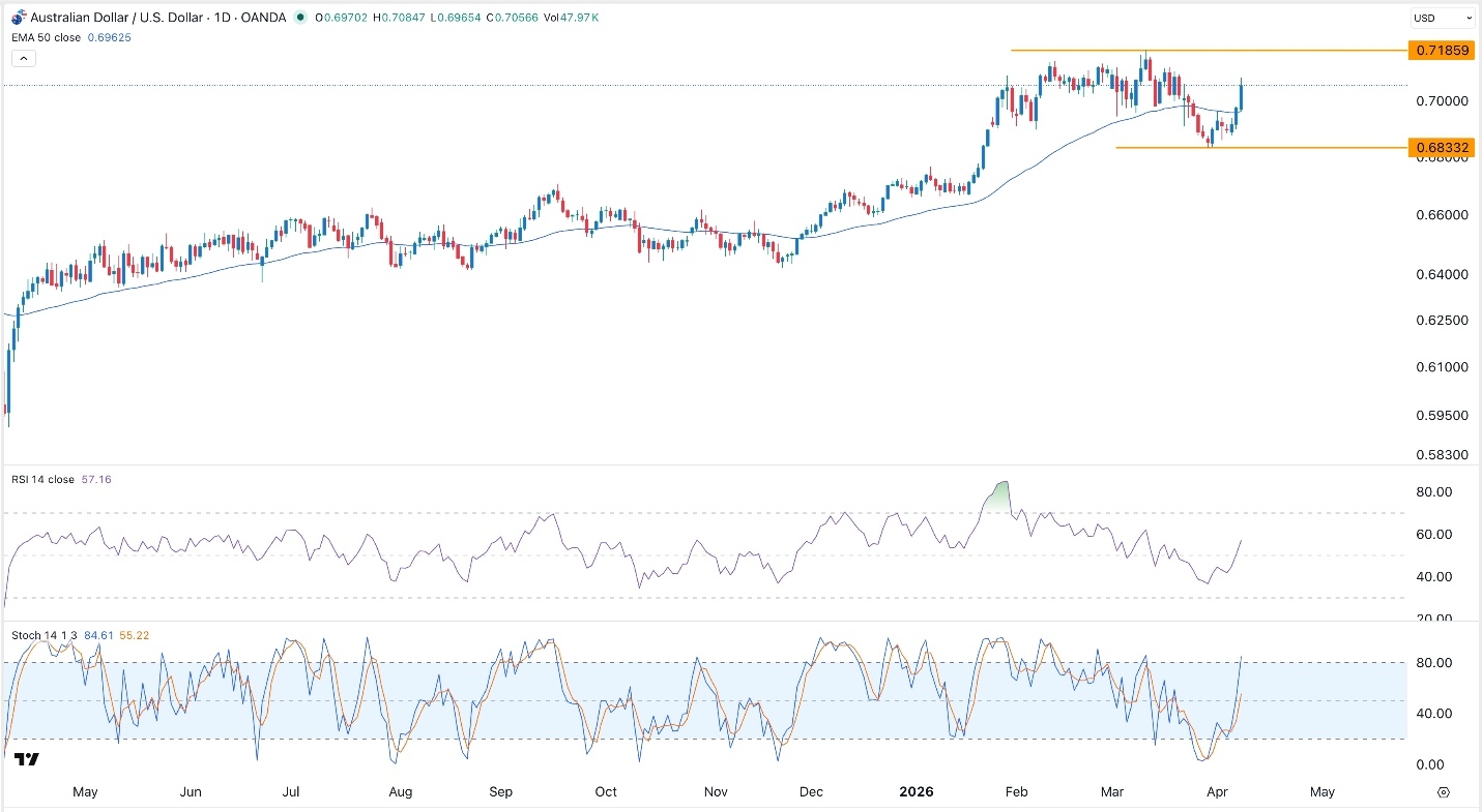 The AUD/USD exchange rate soared sharply as investors embraced a risk-on sentiment in the market. In a statement on Tuesday, President Donald Trump said that he had agreed to a two-week ceasefire with Iran, which will remain as long as the latter agrees to open the Strait of Hormuz.