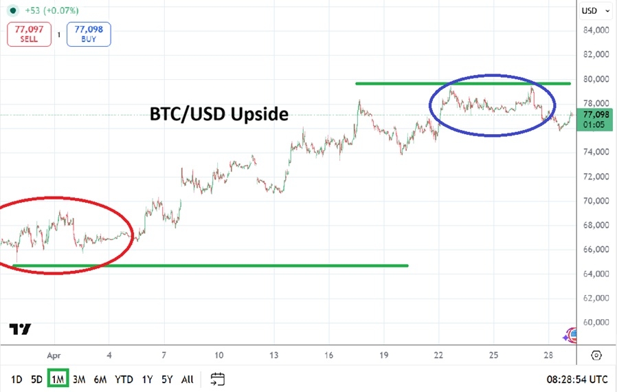 The month of May certainly looks like it may become promising for Bitcoin. April has produced solid evidence that buying can still create upwards momentum in BTC/USD. Yes, many questions and concerns regarding Bitcoin, but the climb the past handful of week has seen a jump of almost $18,000.00 upwards – which is solid.