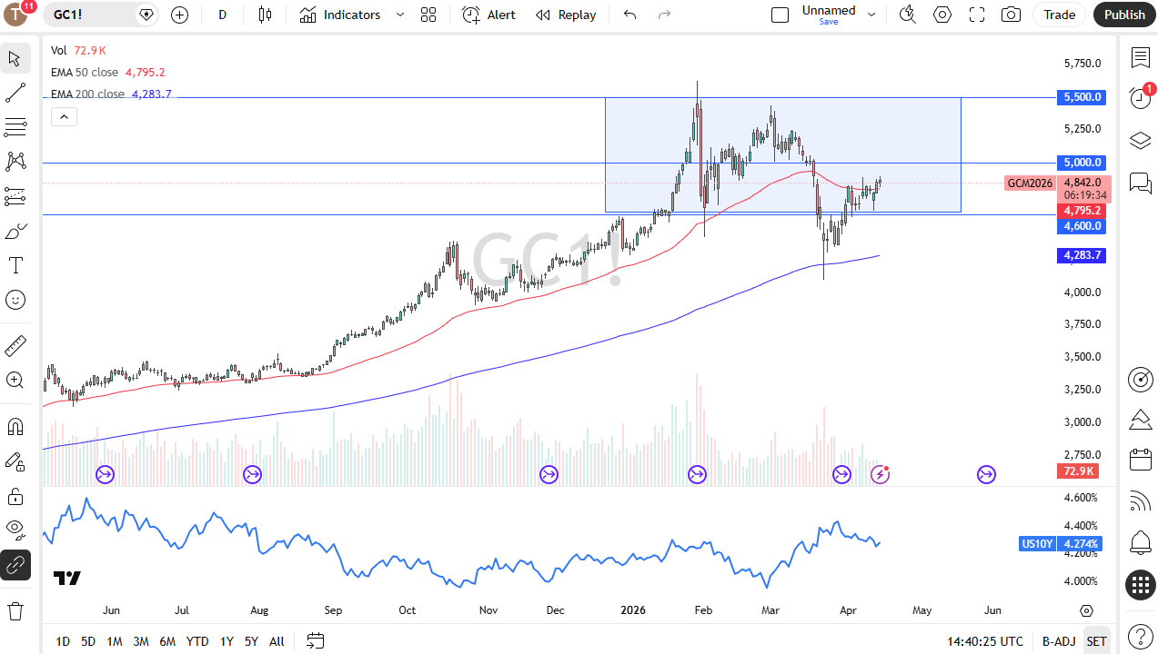 If we can continue to go to the upside, perhaps seeing interest rates drop a bit in the United States, that opens up the possibility of gold trading to the $5,000 level, which I think is a very real possibility right now and something that I would anticipate seeing sooner or later. If we fall from here, the $4,600 level is an area I'll be watching very closely as it has been important multiple times in the past. Anything below that level then I start to get a little bit concerned.