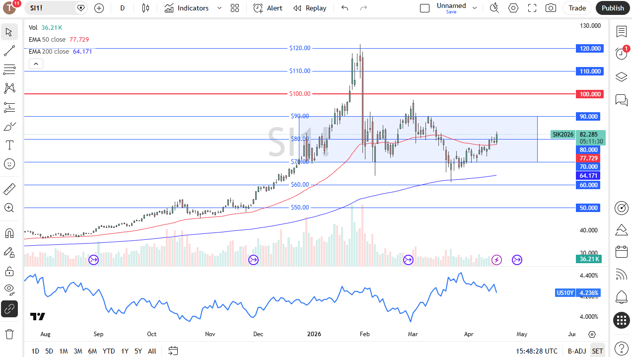 The $80 level in silver being broken to the upside, as the market continues to follow the interest rate markets.