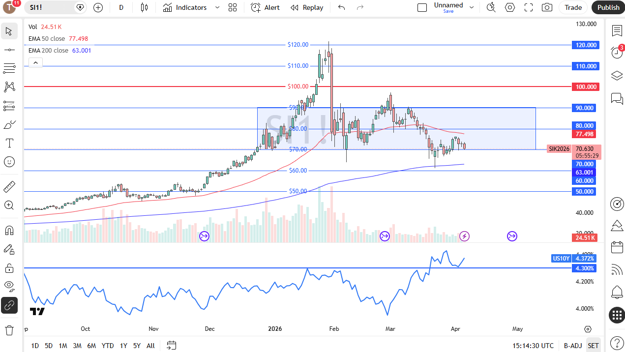 Higher yields are particularly damaging for a market like silver, which is a non-yielding asset, and as a result, it is important to watch. This is a level that I have noticed for some time. It can change depending on the situation. It is possible that maybe some time down the road it will be 3.8%. We just do not know. But right now, it is 4.3% that people are watching.
