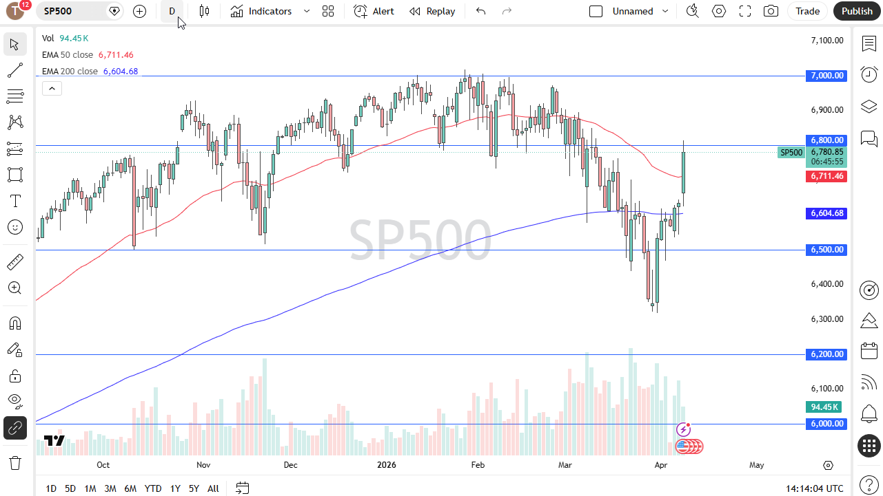 The S&P 500 jumped with the announcement of the ceasefire between the United States and Iran. However, there are a lot of nerves out there, and volatility probably hasn’t disappeared quite yet.